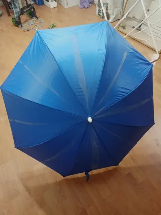 Sombrilla para coche de color azul. Protege del sol y es fácil de usar. - Diseño plegable. - Mango blanco.