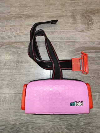 Alzador de coche compacto y plegable, ideal para llevarlo a cualquier parte. Su diseño permite guardarlo fácilmente. - Color rosa - Correa de sujeción negra con líneas rojas Ideal para segundos coches, viajes, taxis,... Alzador coche Elevador coche Plegable compacto