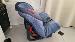 Silla de coche en color azul. - Tapicería de tela. - Arnés de seguridad de 5 puntos. - Reductor para bebés.