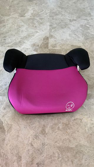 Silla alzador para coche, adecuada para los grupos II y III. Diseñada para ofrecer comodidad y seguridad. - Color: Fucsia y negro. - Detalle de cara sonriente con logo BABY.