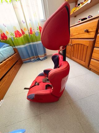 Se venden dos sillas de coche en color rojo, con arnés de seguridad. Una de 0 a 4 años y la otra a partir de 4 años. - Diseño acolchado para mayor comodidad. - Sistema de sujeción de 5 puntos. - Funda extraíble para lavado.