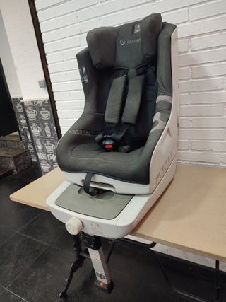 Se vende silla de coche Bebeconfort AxissFix iSize en buen estado. Es de color gris oscuro y tiene un diseño elegante y moderno. - Válida para niños desde el nacimiento hasta los 19 kg o 105cm - Sistema de rotación 360º para facilitar la colocación del niño. - Sistema Isofix para una instalación sencilla y segura. - Contramarcha y sentido de la marcha