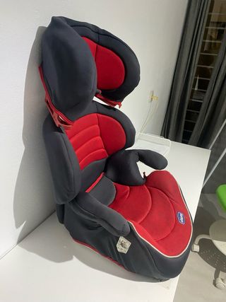 Sillita de coche para niños en color rojo y negro. Marca Chicco.