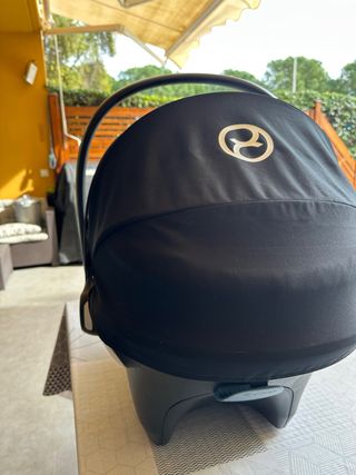 Silla de coche Cybex en color negro. - Diseño moderno y elegante. - Capota integrada. - Asa de transporte.