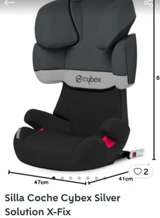 Se vende 2 sillas de coche Cybex Solution X-Fix en color negro y gris, con sistema Isofix. Precio por 2. Precio original (135 eur cada uno) - Buen estado de conservación. - puedes quitar la funda para lavar - Apto para edades de 3 a 12 años - Marca: Cybex. - Modelo: Solution X-Fix.