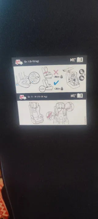 Silla de coche para niños de entre 9 y 18 kg. Incluye instrucciones de uso. - Homologada para grupo 1 (9-18 kg). - Indicador de peso en la etiqueta.
