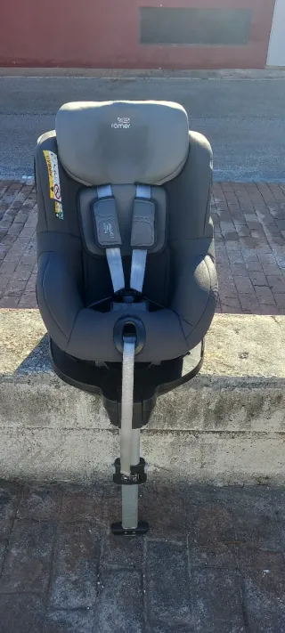 Silla de coche Britax Römer Dualfix en color gris. Perfecta para el coche. - Sistema de giro 360 grados. - Homologación i-Size. - Instalación con Isofix y pata de apoyo. - Reductor grupo cero.
