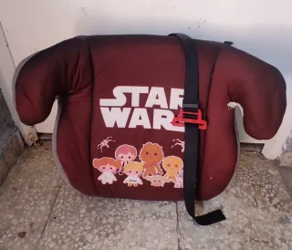 Alzador para coche con diseño de Star Wars para niños. Presenta personajes icónicos de la saga. - Diseño temático de Star Wars. - Ilustraciones de personajes. - Incluye cinturón de seguridad.