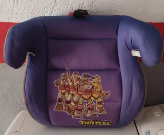 Alzador para coche con diseño de las Tortugas Ninja. - Color azul y morado. - Ilustración de las Tortugas Ninja en el frontal. - Logo de Teenage Mutant Ninja Turtles.