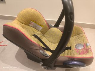 Silla de coche para bebe de marca Maxicosi. Diseño de tela muy original. *La tela tiene un pequeño roto que se puede ver en la cuarta foto