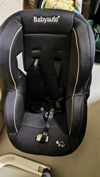 Silla de coche BabyAuto en color negro con sistema Isofix y SIPS (Sistema de Protección contra Impactos Laterales). 1. La altura del reposacabezas es ajustable. 2. El asiento se puede reclinar ligeramente para que el querubín pueda descansar. 3. Arnés para la maxima seguridad del enano. 4. Se puede instalar con Isofix y con el cinturón. * Se entrega limpia. Las marcas de dedos que se ven se deben a que tenia las manos mojadas de la lluvia ☔️. ¡Gracias! Se puede acercar la silla a los alrededores de Irun. 30-40KM.
