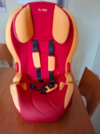 Silla de coche para bebé de la marca Nurse, en color rojo y naranja. Hasta 36 kg - Diseño acolchado para mayor comodidad. - Arnés de seguridad de 5 puntos. - Reposacabezas ajustable.