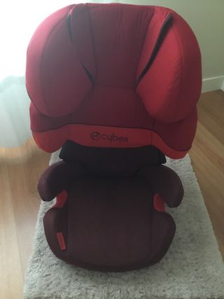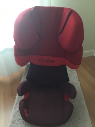 Silla de coche Cybex Solution X2-Fix para los grupos 2 y 3. Diseñada para ofrecer seguridad y comodidad. - Color rojo y burdeos. - Reposacabezas ajustable. - Sistema de fijación Isofix. - De 15 a 36 kg