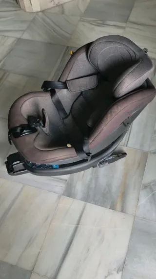 Silla de coche para grupos 0, 1 y 2. Hasta 105 cm. Con sistema de anclaje al coche Isofix Es giratoria para facilitar la colocación del niño. Con un poco de desgaste del uso. Muy muy cómoda para sentar al bebé. - Tapicería gris. - Incluye cinturones de seguridad.