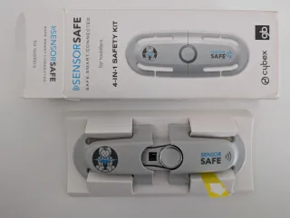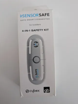 Kit de seguridad 4 en 1 de Cybex SensorSafe, diseñado para niños. El dispositivo es de color gris y blanco. No se ha usado nunca. - Incluye el dispositivo SensorSafe. - Versión para niños.