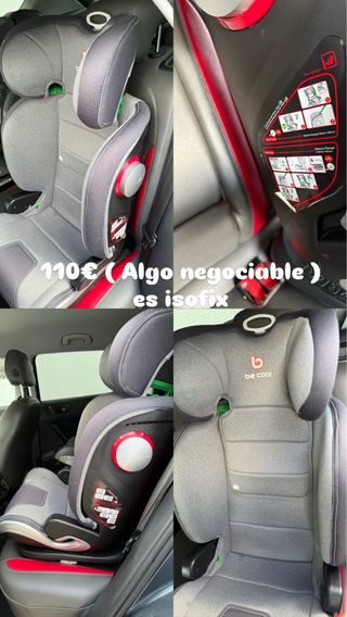 Silla de coche de la marca Be Cool con sistema Isofix. - Color gris y detalles en rojo. - Respaldo ajustable en altura. - Acolchado para mayor comodidad. Se entregaria limpia y desinfectada.