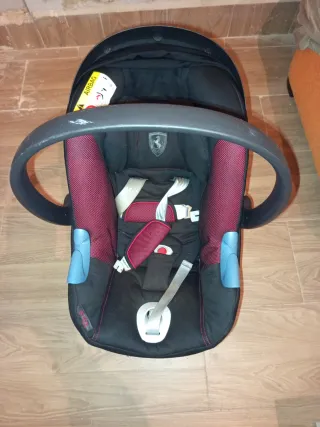 Silla de coche para bebé con diseño deportivo de Ferrari. - Incluye arnés de seguridad de 5 puntos. - Funda acolchada para mayor comodidad. - Asa de transporte ergonómica.