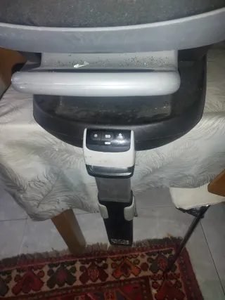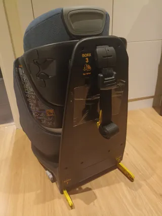 Silla de coche para coche, apta para grupos 0, 1, 2 y 3. Gira 360 grados para facilitar el montar al niño. Base con pata con anclaje isofix. - Diseño moderno y acolchado. - Arnés de seguridad de 5 puntos. - Funda extraíble y lavable. Sin ningún desperfecto ni desgaste.