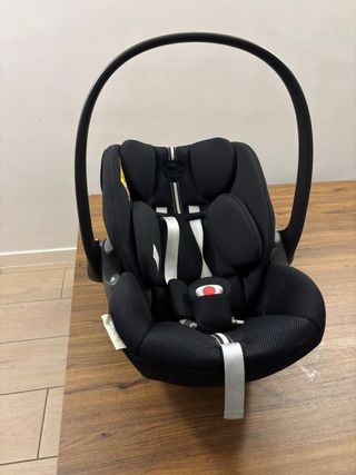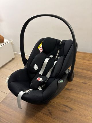 Silla de coche y portabebés Cybex Cloud Z en color negro. - Diseño moderno y elegante. - Capota solar integrada. - Arnés de seguridad de 5 puntos.