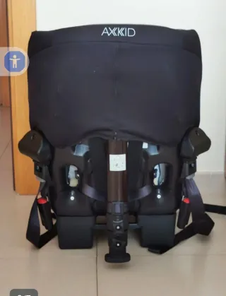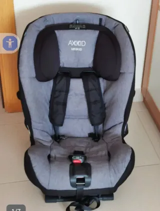 Silla de coche para niños de la marca Axkid, modelo Minikid. Diseñada para colocar a contra marcha para ofrecer seguridad y comodidad. - Tapicería gris y negra. - incluye alzador y espejo - Reposacabezas ajustable.