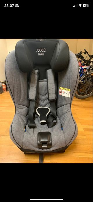 Silla de coche AXKID MINIKID para instalar a contramarcha. Diseñada para la seguridad y comodidad del pequeño. - Tapicería gris jaspeada. - Arnés de seguridad de 5 puntos. - Reposacabezas ajustable. - Indicador de airbag.