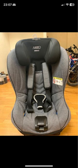 Silla de coche Axkid Minikid en color gris y negro. - Diseño acolchado para mayor comodidad. - Sistema de arnés de seguridad. - Reposacabezas ajustable.
