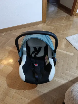 Silla de coche para bebé, grupo 0+, con diseño moderno y confortable. - Incluye arnés de seguridad de 5 puntos. - Capota para proteger del sol. - Asa de transporte ergonómica.