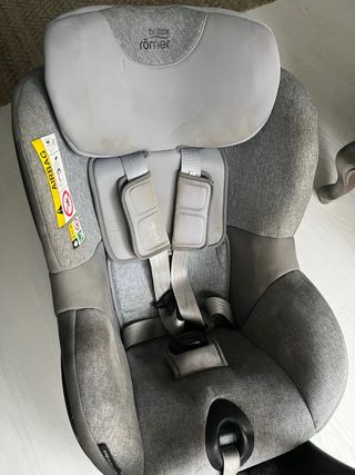 Silla de coche Britax Römer Dualfix en color gris. Diseñada para ofrecer seguridad y comodidad. - Tapicería de tela. - Sistema de arnés de 5 puntos. - Reposacabezas ajustable. Se encuentra en buen estado pero la tapiceria necesita una limpieza.