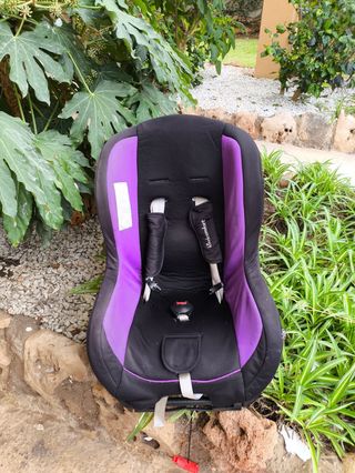 Silla de coche para bebé de la marca Kindcomfort, en color morado y negro. Está en buenas condiciones, aunque presenta algunas señales de uso. - Marca: Kindcomfort - Color: Morado y negro - Ideal para bebés entre 0 y 18 kilos - Diseño ergonómico. - Arnés de seguridad de 5 puntos. - Funda acolchada.