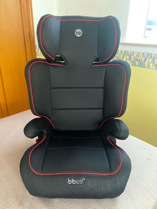 Silla de coche para niños, en color negro con un detalle de ribete en color rojo. Sin apenas uso. Están nuevas. Tengo dos iguales. Precio por silla - Diseño ergonómico. - Logo de la marca 'bb' en la parte superior. - Logo de la marca 'bbest' en la base. - Con isofix - Diferentes alturas - Reposa brazos