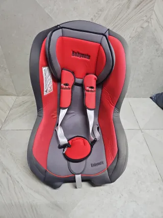 Silla de coche Babyauto en color rojo y gris. Diseñada para la seguridad y comodidad. - Tapicería acolchada. - Cinturones de seguridad ajustables. - Reposacabezas integrado.