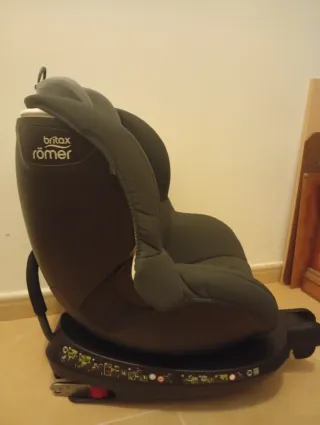 Silla de coche Britax Römer en color negro con dibujos a rayas, adecuada para niños desde bebés hasta 4 años. Todos los accesorios incluidos. Giratoria 360.ispfix.se puede ponerla contramarcha. Precio nueva 550€ Sistema de sujeción, arnés 5 puntos
