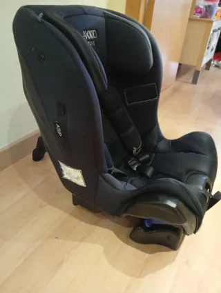 Silla de coche AXKID diseñada para ser instalada a contramarcha. - Color negro. - Incluye arnés de seguridad de 5 puntos. - Reposacabezas ajustable. - Hasta los 6 años.