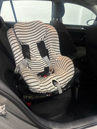 Silla de coche Britax Römer Dualfix2 R con funda a rayas. - Con Funda con diseño de rayas blancas y negras (Marca Fundas Bcn) - Sistema de giro 360 grados.