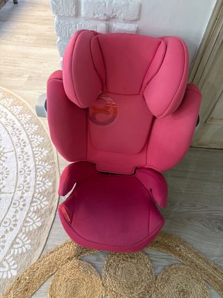 Silla de coche para niños del grupo 2/3. - Color rosa vibrante. - Diseño ergonómico para mayor comodidad. - Marca Cybex reconocida por su seguridad.