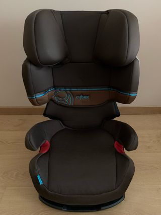 Silla de coche Cybex Solution X-FIX en color negro. - Diseño ergonómico. - Reposacabezas ajustable. - Sistema de protección lateral. - Funda extraíble y lavable. Se puede poner con ISOFIX o cinturón Muy buen estado
