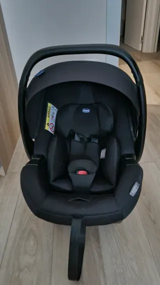 Silla de coche Chicco Kory Essential en color negro. Diseñada para la seguridad y comodidad del bebé. - Homologación para grupo 0+. - Sistema de arnés de 5 puntos. - Capota integrada. - Asa de transporte ergonómica.