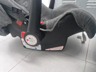 Silla de coche Jane Graviti con sistema de giro 360 grados. Diseñada para la seguridad y comodidad. De 0-15 meses con reductor. Tiene desgaste del uso pero funciona perfectamente. - Tapicería en color rojo y negro. - Cinturones de seguridad de 5 puntos. - Base giratoria para facilitar la instalación y el acceso. - Indicaciones de instalación en la base.