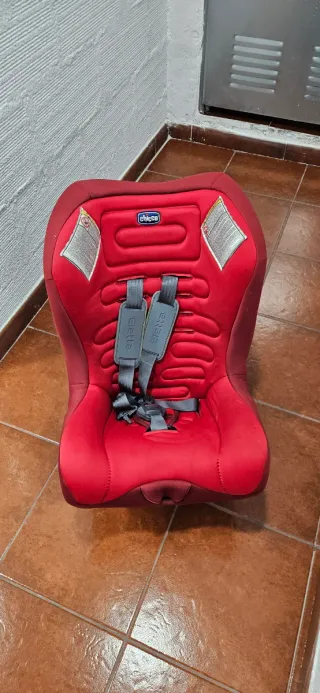 Silla de coche Chicco Eletta en color rojo, apta para los grupos 0+ y 1. - Diseño ergonómico. - Arnés de seguridad de 5 puntos. - Funda extraíble y lavable.