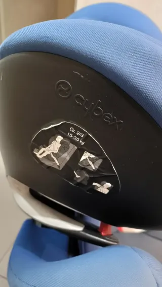 Silla de coche Cybex en color azul. Diseñada para ofrecer seguridad y comodidad. - Reposacabezas ajustable. - Sistema de protección lateral.