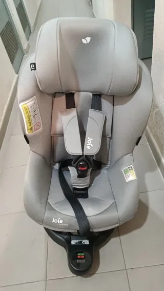 Silla de coche giratoria de la marca Joie, modelo i-Spin 360, en color gris. - Sistema de rotación 360 grados. - Homologación i-Size. - Faltan los reductores para recién nacidos.