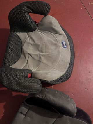 Alzador de coche de la marca Chicco, ideal para viajes. - Diseño ergonómico. - Tapicería gris y negra. - Logo de la marca visible. 2€ los dos