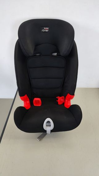 Silla de coche para niños de la marca Britax Römer en color negro. - Diseño ergonómico. - Reposacabezas ajustable. - Sistema de sujeción seguro.