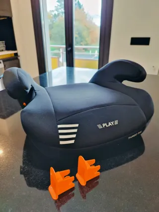 Elevador para coche de la marca Play, diseñado para los grupos 2 y 3. Es un asiento cómodo y seguro para los más pequeños. - Sistema de anclaje Isofix. - Diseño en color negro. - Incluye dos soportes naranjas.