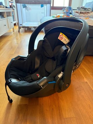 Silla de coche grupo 0-1. Se utiliza en sentido contrario a la marcha desde el nacimiento hasta los 4 años. Alternativamente en el sentido de la marcha desde que el niño alcanza los 76 cm de altura. Con base Isofix y conectores que facilitan el montaje. 5 posiciones de reclinado en sentido contrario y 3 en sentido de la marcha. Se reclina con una sola mano. Reposacabezas regulable en altura en 12 posiciones. Sistema de protección contra impactos laterales Reductor para recién nacido( última foto)