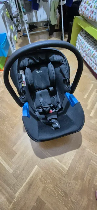 Silla de coche para bebé de la marca Silver Cross. - Color negro. - Incluye arnés de seguridad de 5 puntos. - Asa de transporte. - Capota extraíble.