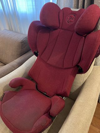 Silla de coche Cybex con sistema Isofix en color naranja. Mucho uso. Los cinturones deben estar pillados, con mañana imagino que no será difícil que vuelvan a correr. - Diseño moderno y seguro. - Acolchado para mayor comodidad. - Arnés de seguridad de 5 puntos.