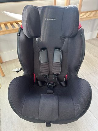 Silla de coche Foppapedretti con sistema Isofix, apta para los grupos 1, 2 y 3. - Tapicería negra. - Reposacabezas ajustable. Asiento reclinable en diferentes posiciones. - Cinturón de seguridad de 5 puntos para el grupo 1, guía para cinturón de seguridad y acolchados interno de protección. - Para niños de 9 a 36kg. - Orientación hacia delante. - Incluye reductor. - Revestimiento desenfundable y lavable. Buen estado, siempre usada con funda por encima. no ha sufrido ninguna golpe.