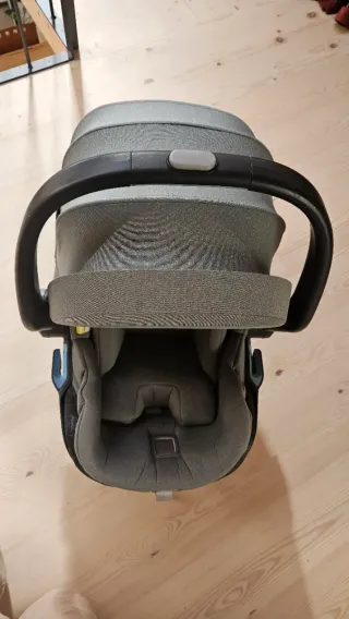 Silla de coche para bebé en color gris. Con sus accesorios completos. - Tejido acolchado. - Sistema de arnés de seguridad. - Homologación ECE R129/03.