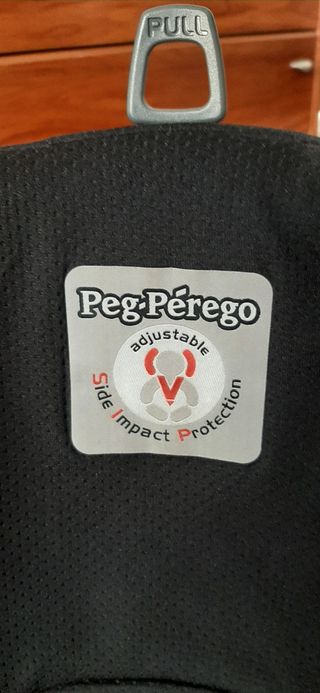 Silla de coche Peg-Perego para bebé, en buen estado. - Sistema de protección lateral ajustable. - Tejido gris oscuro y detalles en gris claro. - Cómoda y segura para el transporte del bebé.